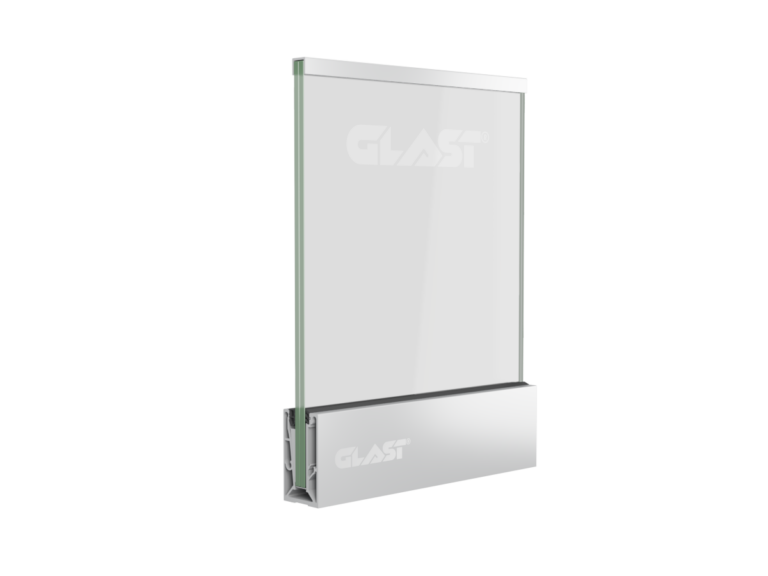 Folosim materiale de cea mai bună calitate, testate si certificate. Profilul are un design elegant si minimalist si permite montarea sticlei cu grosimea de 6.2.6mm la un H maxim de 900mm. Lungimea maxima recomandata este de 6000mm.